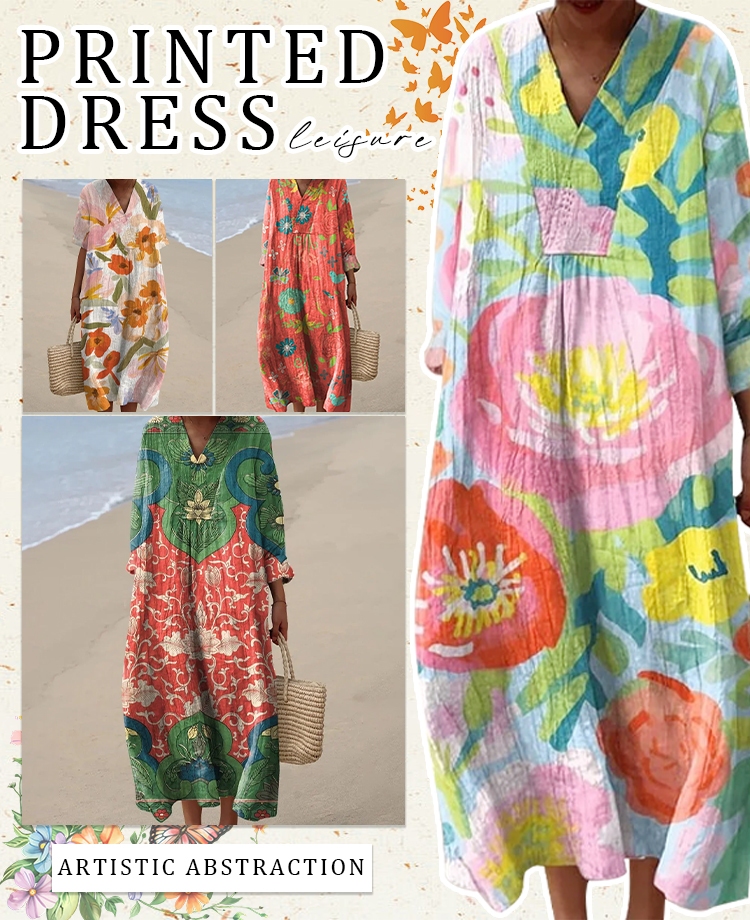 Floral Japanese Contrast Art Linen Blend Maxi Dress