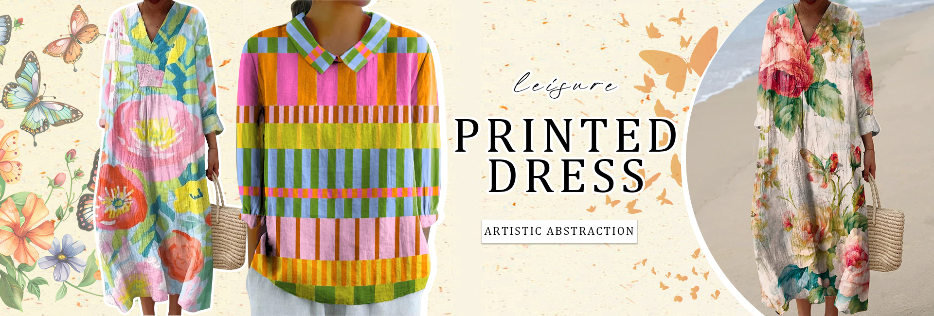 Vintage Japanese Art Print Short Sleeve Loose Midi Dress