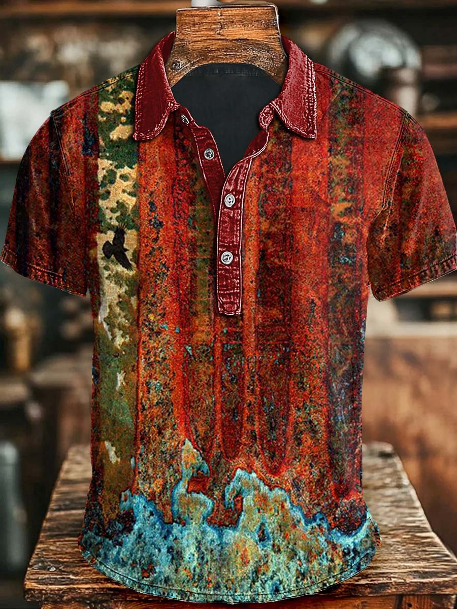 Abstract Color Clash Art Print Casual Short Sleeve Polo Shirt