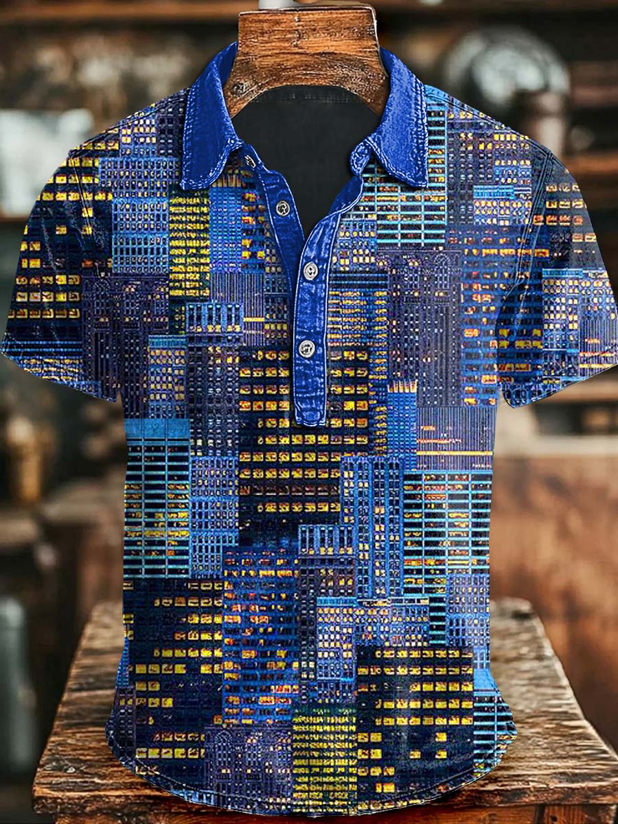 Abstract Lampwork Print Casual Short Sleeve Polo Shirt