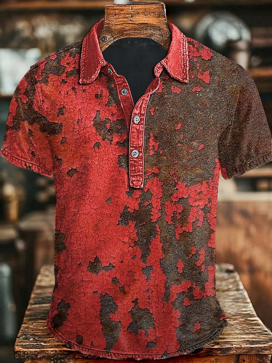 Abstract Rust Crackle Print Casual Short Sleeve Polo Shirt