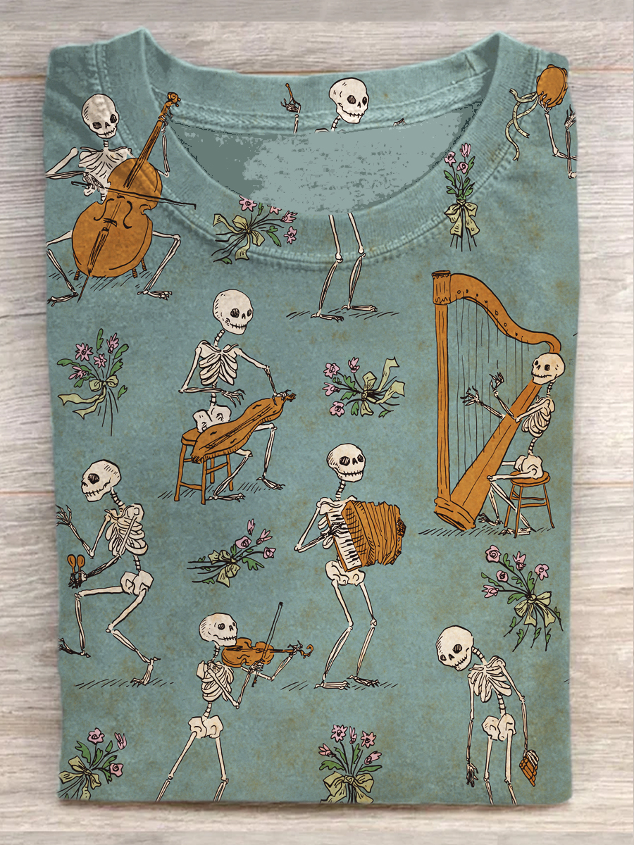 Art Skull Talk Musical Instrument Graphic Design Short Sleeve T-Shirt
