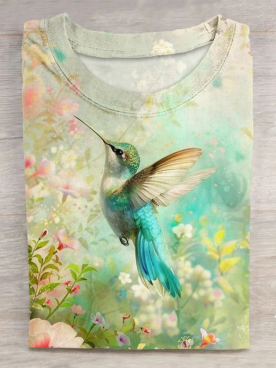 Bird Printed Vintage Fashion Loose Short Sleeve T-Shirt