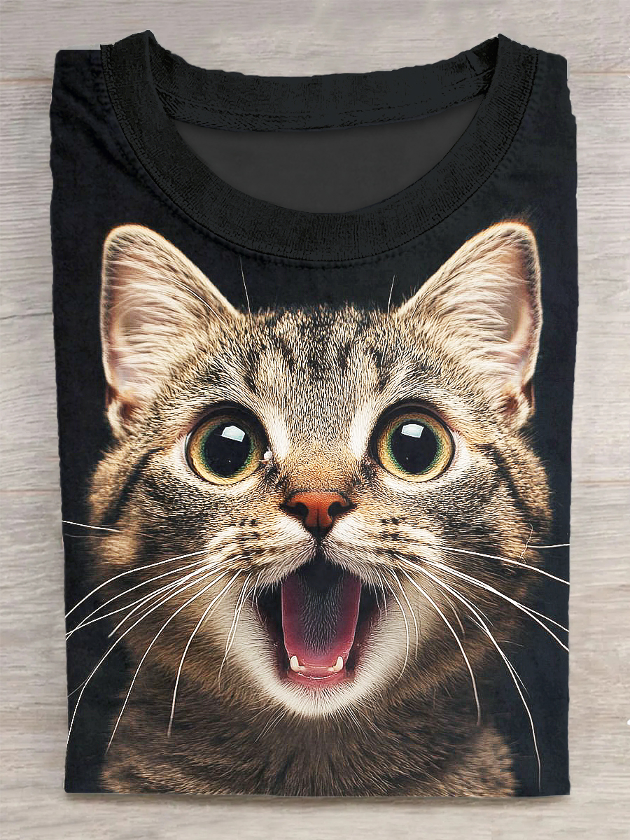 Cat Printed Vintage Fashion Loose Short Sleeve T-Shirt