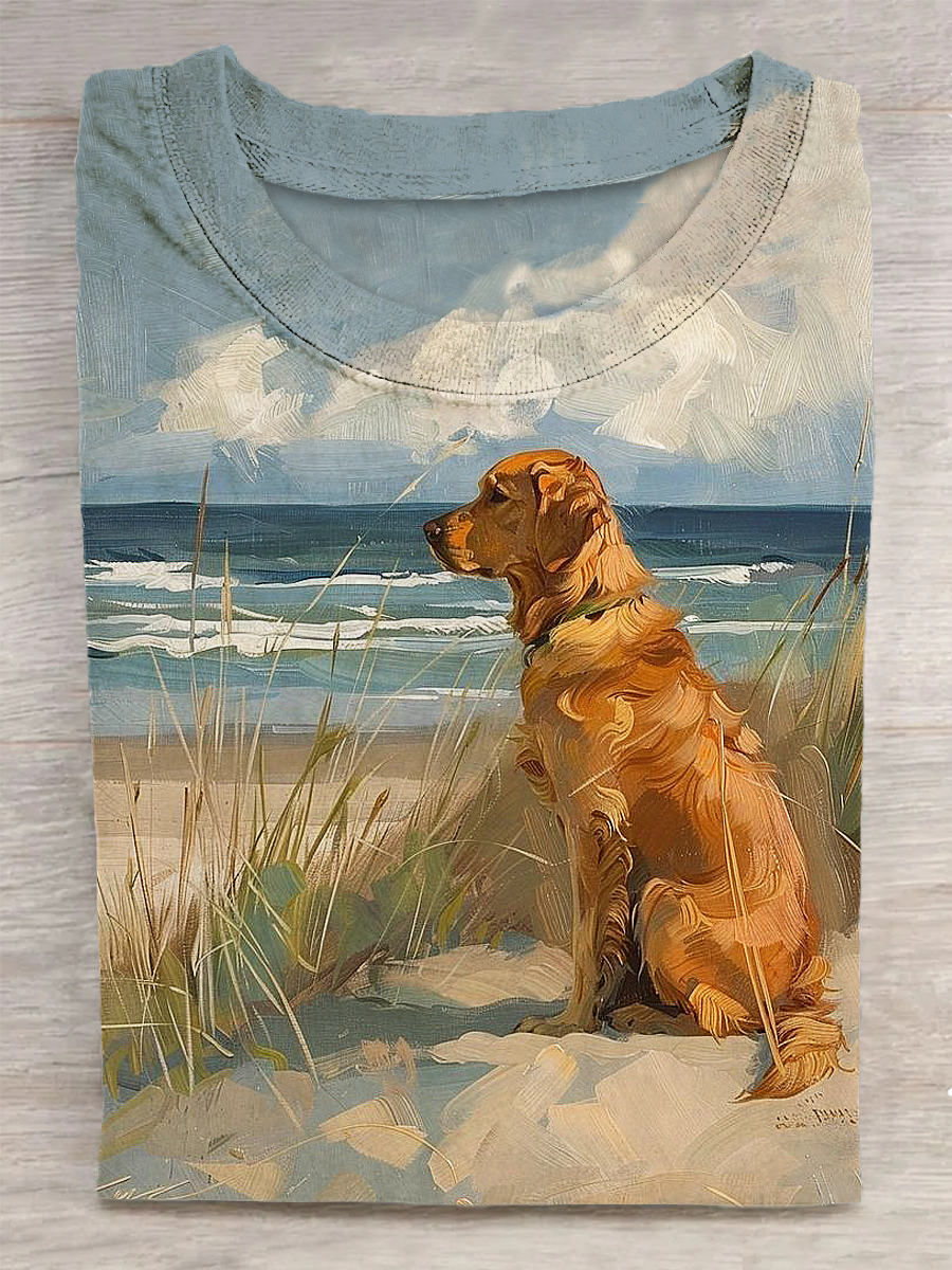 Cute Animal Printed Vintage Fashion Loose Short Sleeve T-Shirt