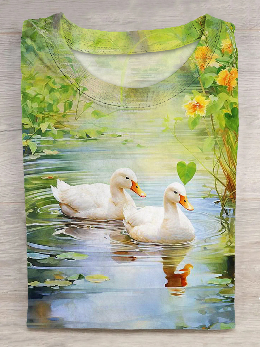 Duck Printed Vintage Fashion Loose Short Sleeve T-Shirt