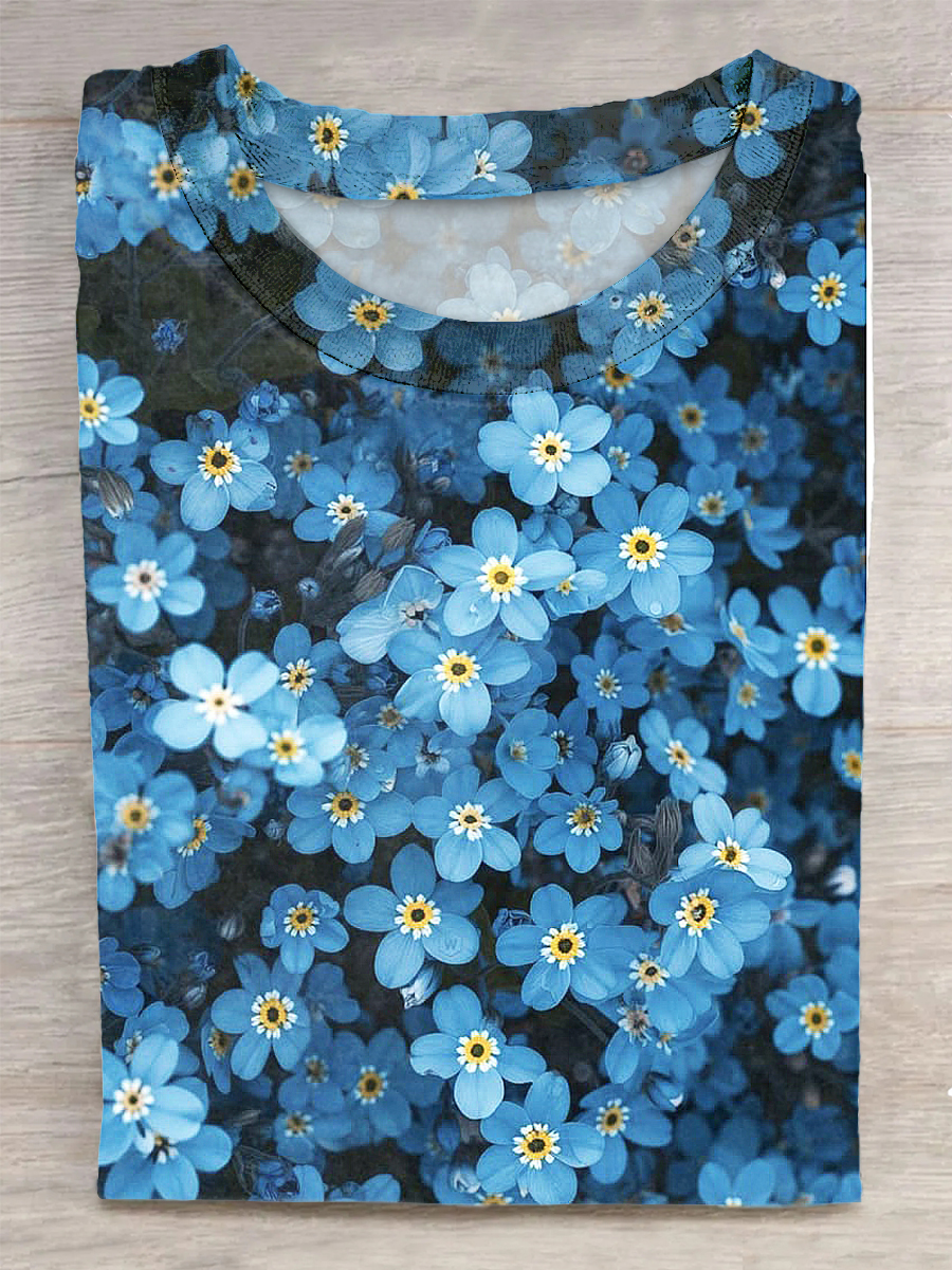 Flowers Printed Vintage Fashion Loose Short Sleeve T-Shirt
