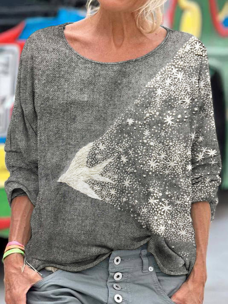 Flying Bird Embroidery Art Women's Linen Shirt