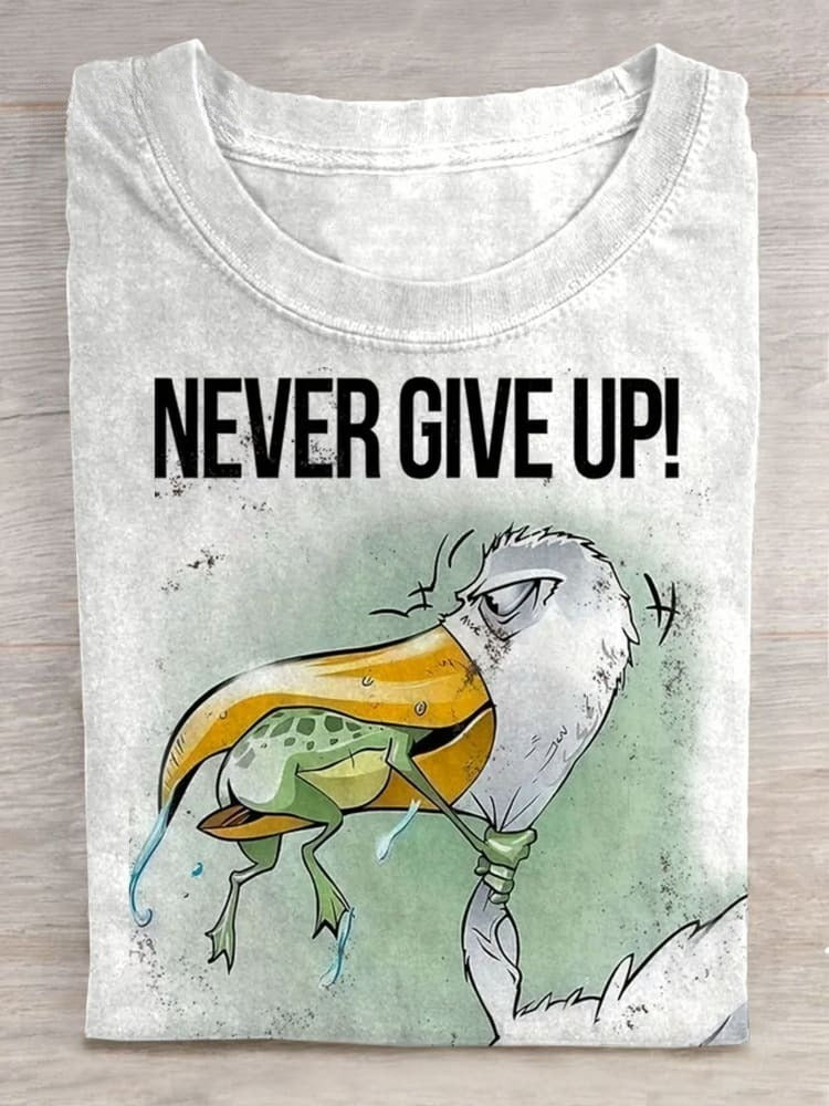 Funny Never Give Up Art Print Casual Short SLeeve T-Shirt