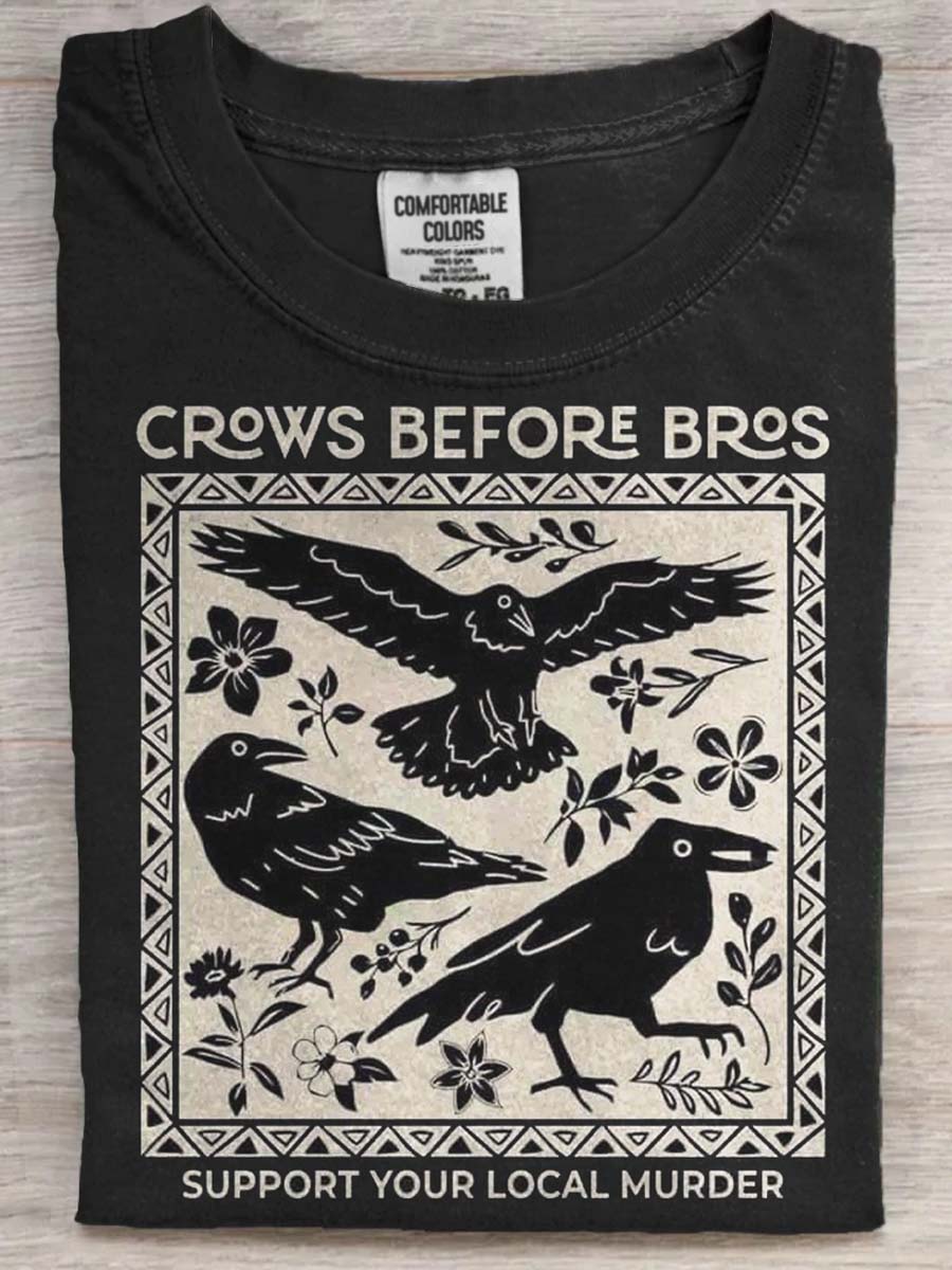 Halloween Raven Print Casual Short Sleeve T-Shirt