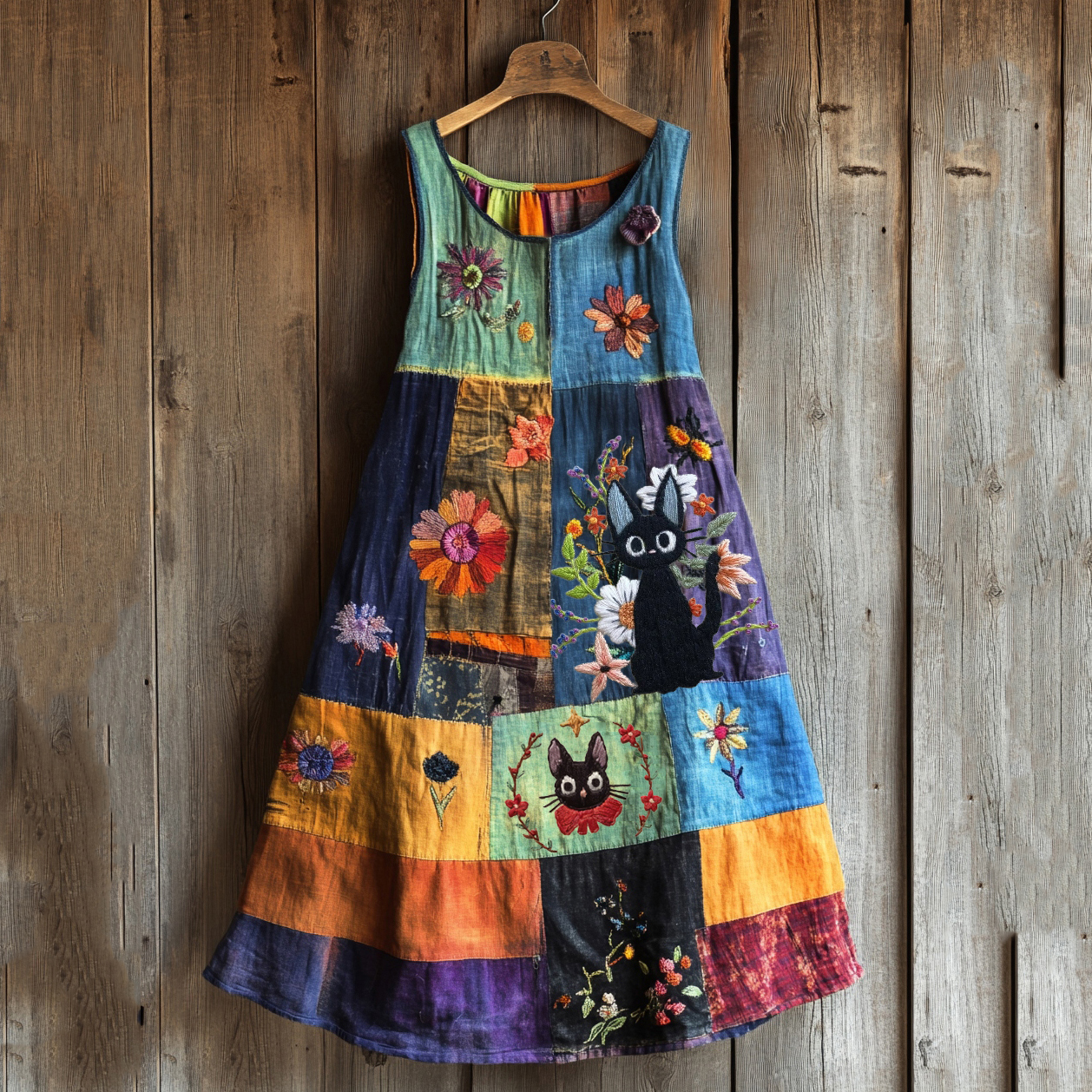 Japanese Anime Cute Cat And Floral Pattern Sleeveless Midi Dress