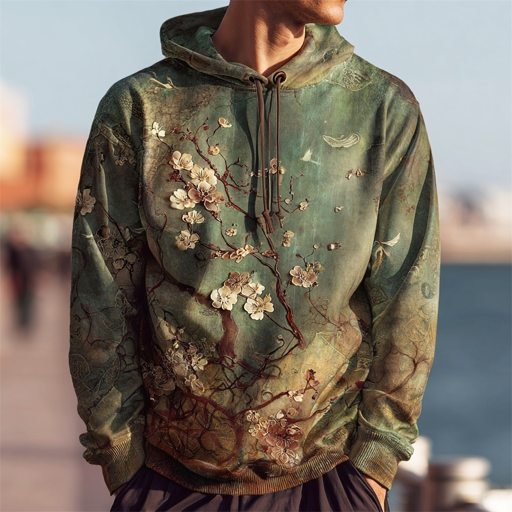 Japanese Art Vintage Plum Flower Men's Casual Hooded Sweatshirt