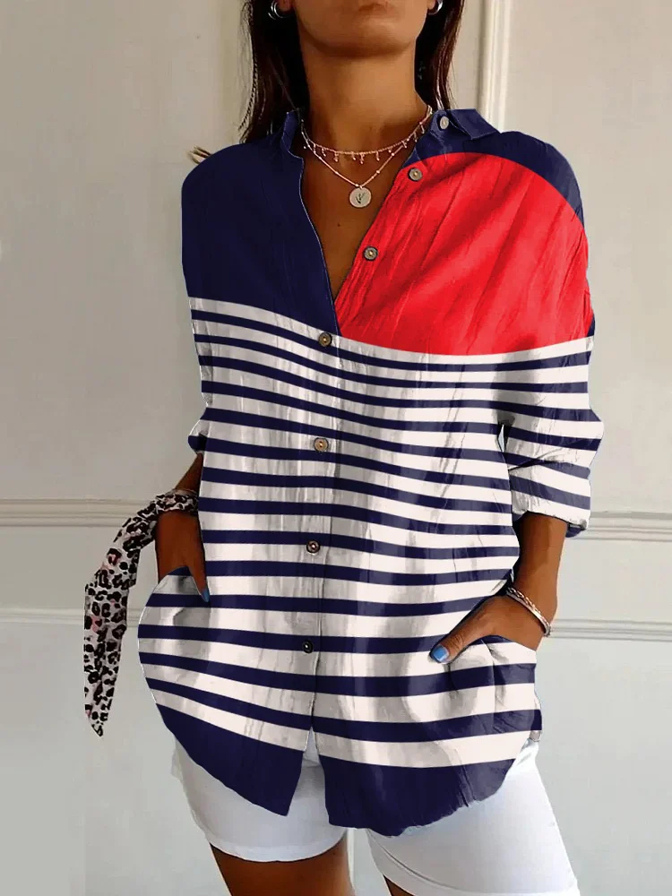 Vintage Abstract Art Stripe Print Casual Long Sleeve Shirt