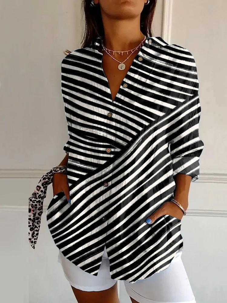 Vintage Abstract Art Stripe Print Casual Long Sleeve Shirt