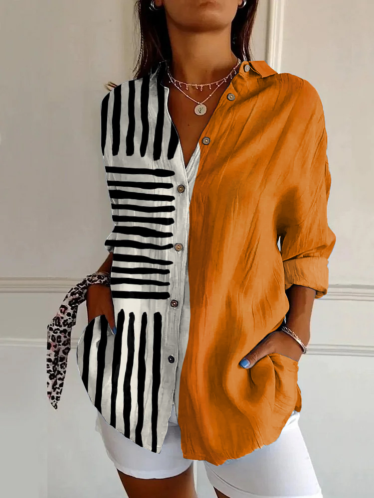 Vintage Abstract Art Stripe Print Casual Long Sleeve Shirt