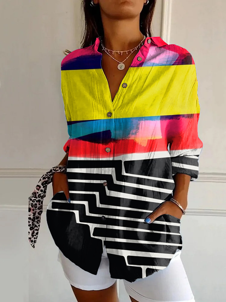 Vintage Abstract Art Stripe Print Casual Long Sleeve Shirt