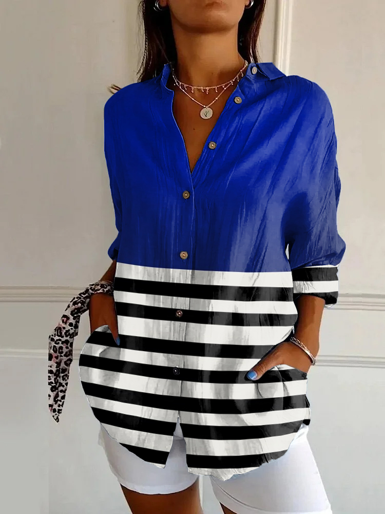 Vintage Abstract Art Stripe Print Casual Long Sleeve Shirt