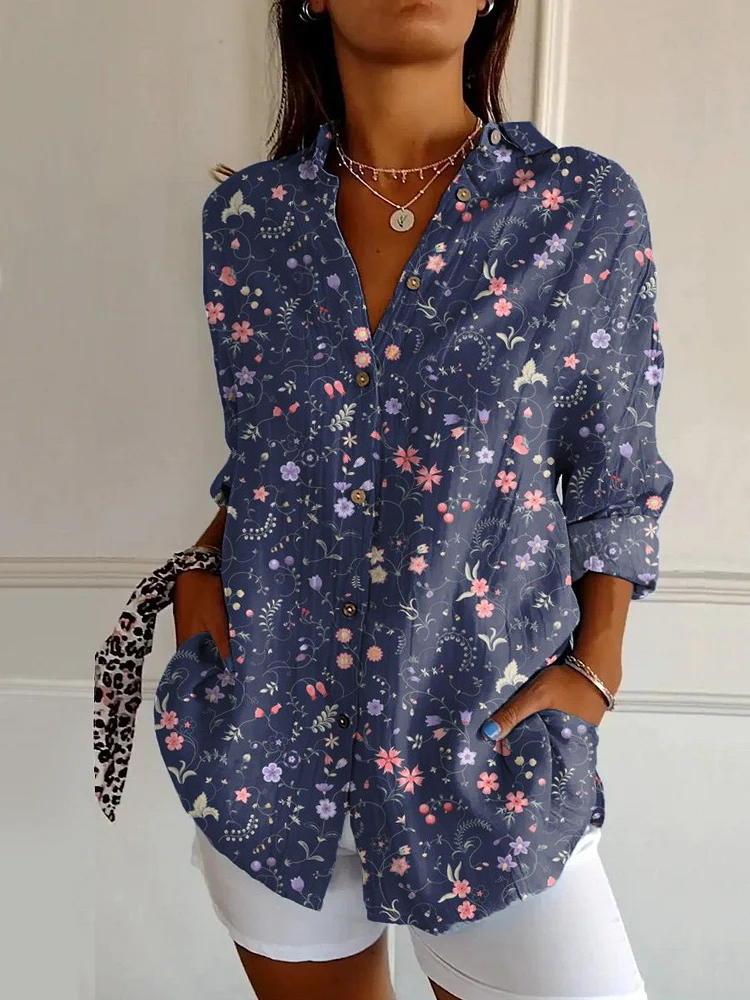 Japanese Colorful Flowers Print Casual Long-sleeved Shirt
