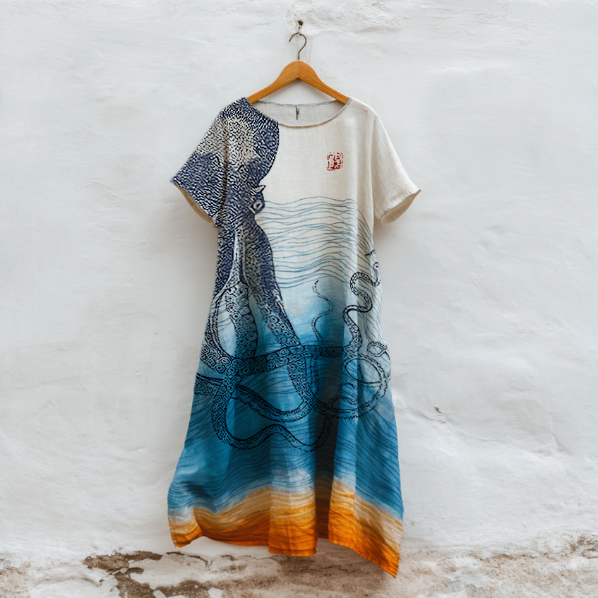 Japanese Octopus In Gradient Art Linen Tank Dress