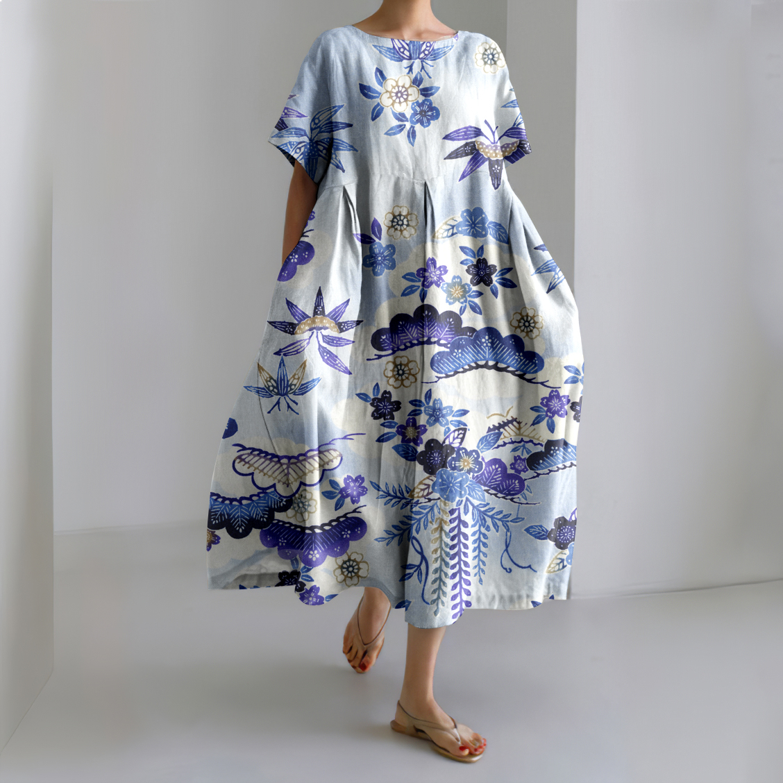 Japanese Plum Blossom Art Linen Blend Casual Dress