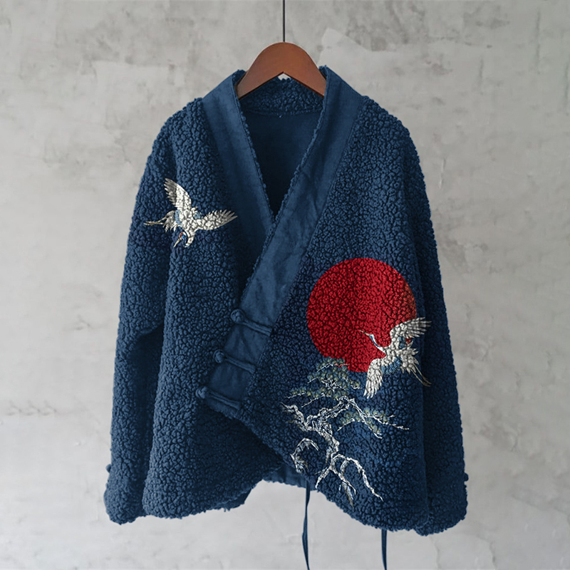 Japanese Style Mountain Sunset Art Plush Cardigan