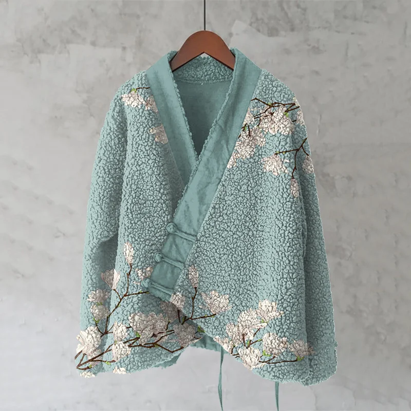 Magnolia Japanese Lino Art Cozy Fleece Kimono Cardigan