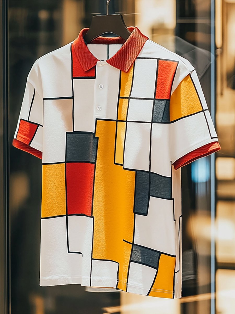Men's Business Casual Bauhaus Printed Button Short Sleeve Polo Shirt