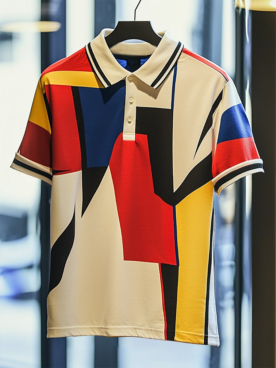 Men's Business Casual Bauhaus Printed Button Short Sleeve Polo Shirt