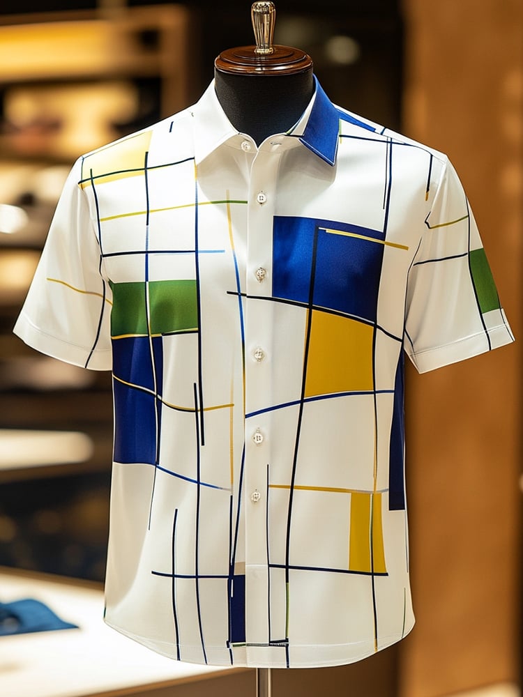 Men's Business Casual Creative Plaid Lapel Short Sleeve Shirt