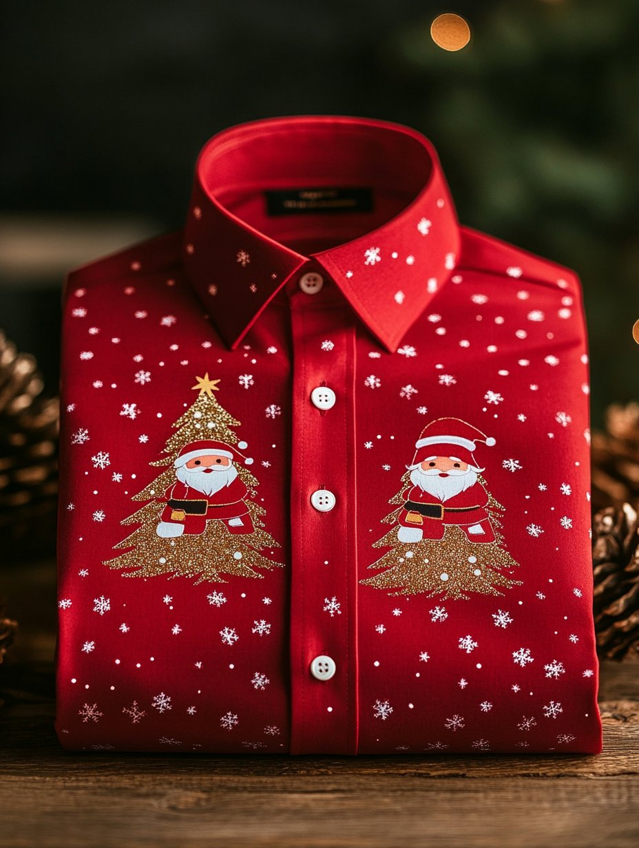 Men's Business Retro Christmas Santa Claus Snowflake Long Sleeve Shirt