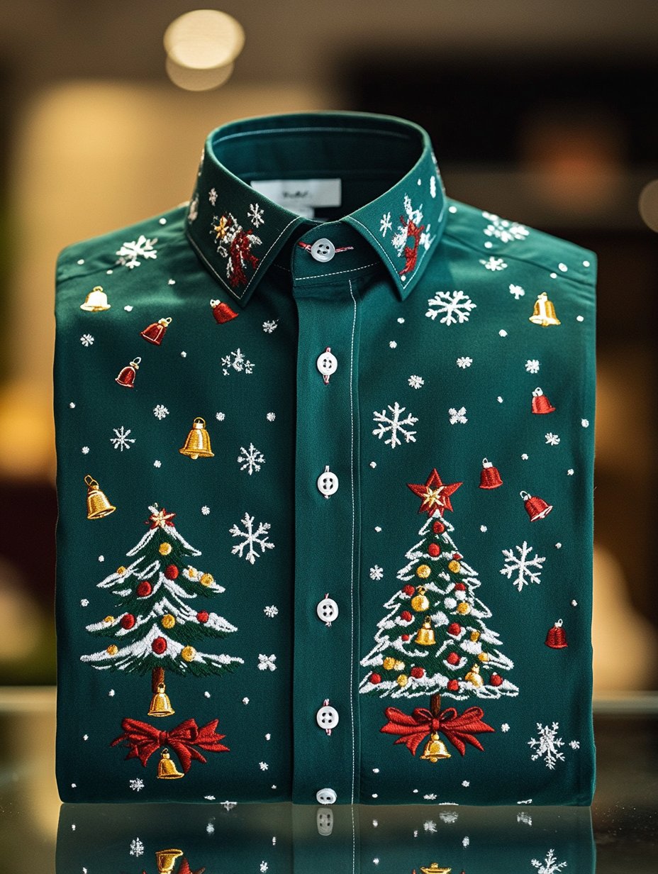 Men's Business Retro Christmas Tree Bell Snowflake Long Sleeve Shirt