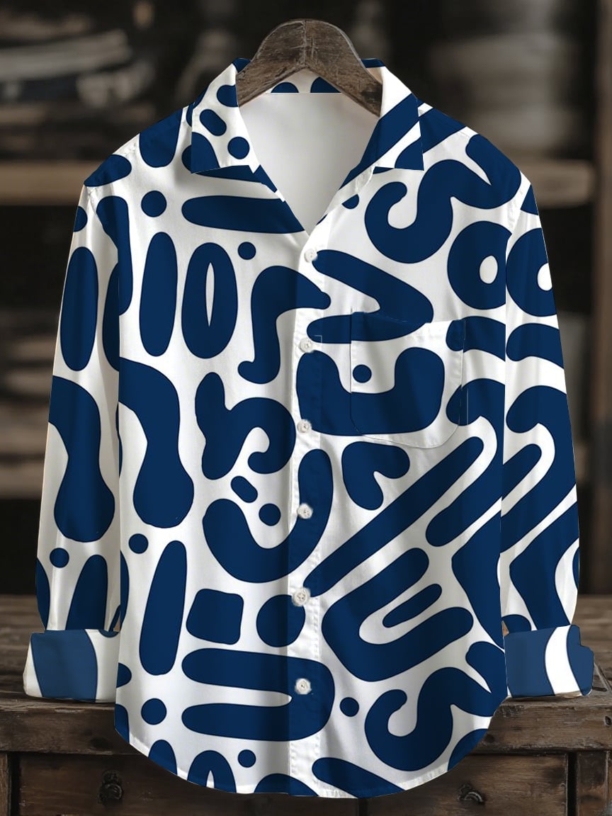 Men's Casual Abstract Printed Long Sleeve Shirt