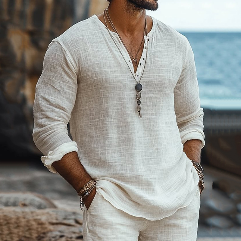 Men's Casual Fashion Solid Color Cotton And Linen Button Shirt