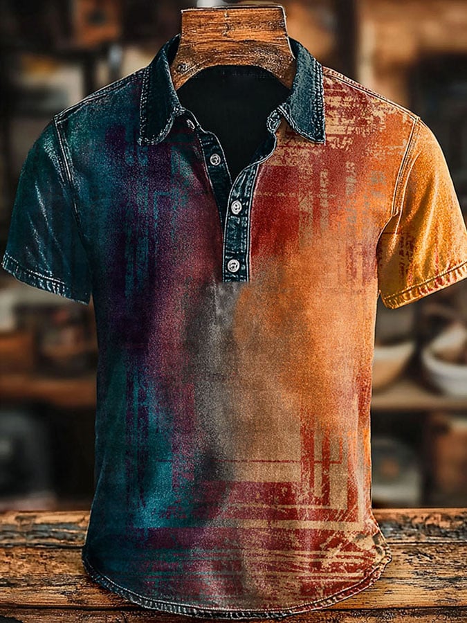Men'S Casual Retro Contrast Color Graphic Print Short Sleeve Polo Shirt