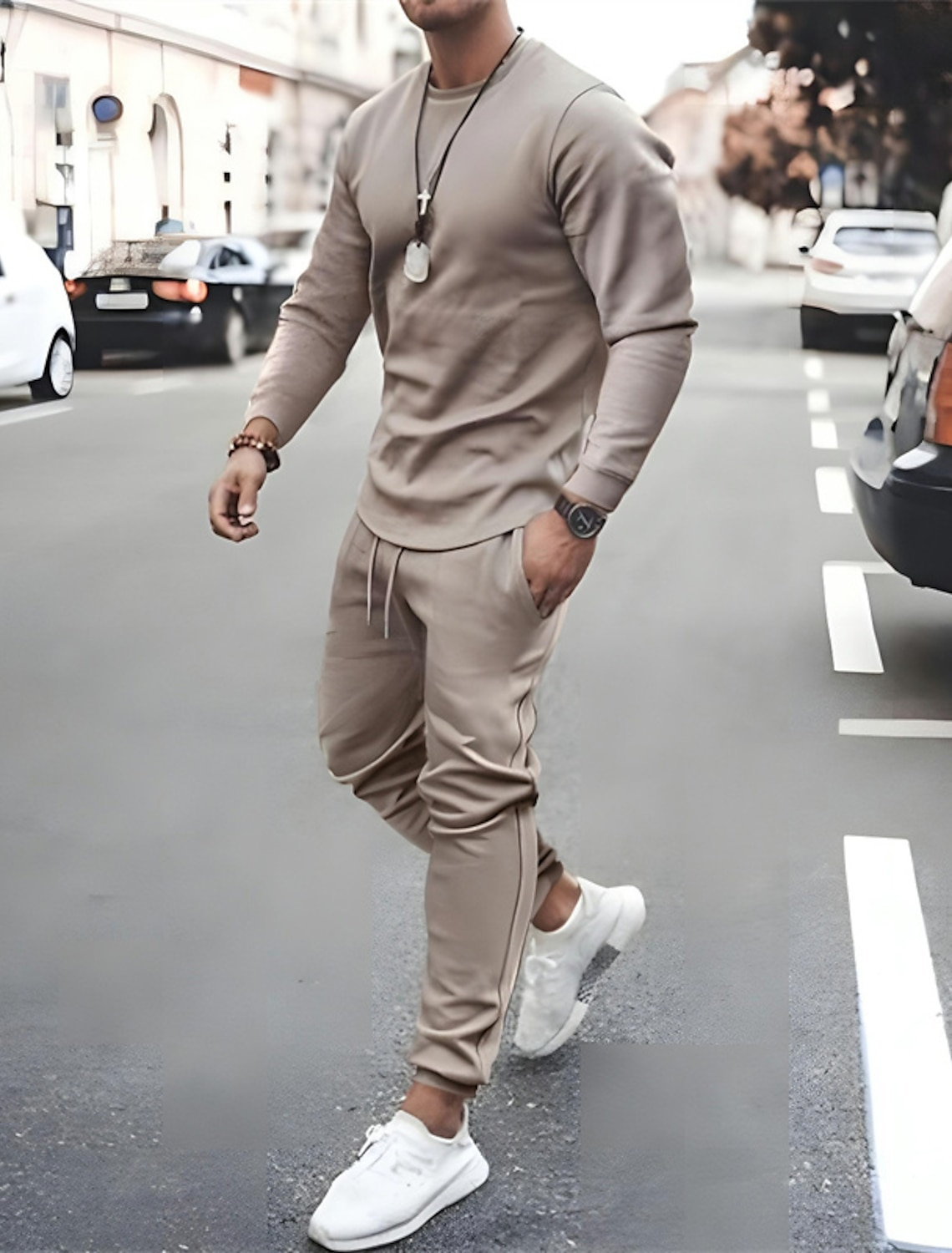 Men's casual solid color long-sleeved sports set 7 colors