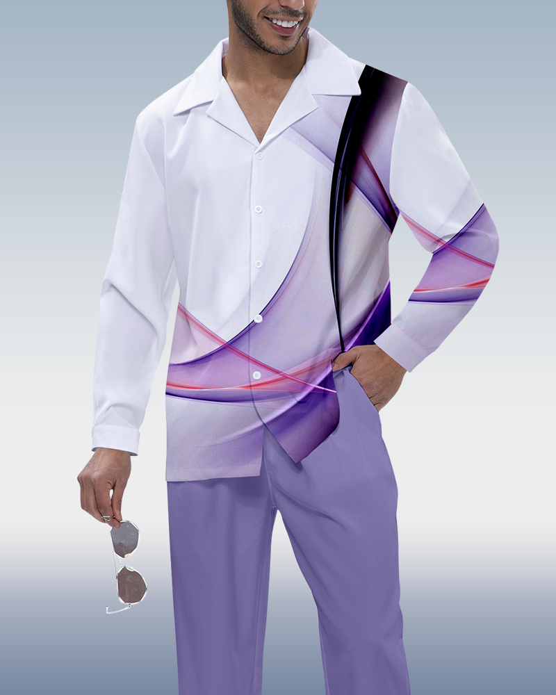 Suitmens Men's Colorblock Gradient Print Long Sleeve Walking Suit 228