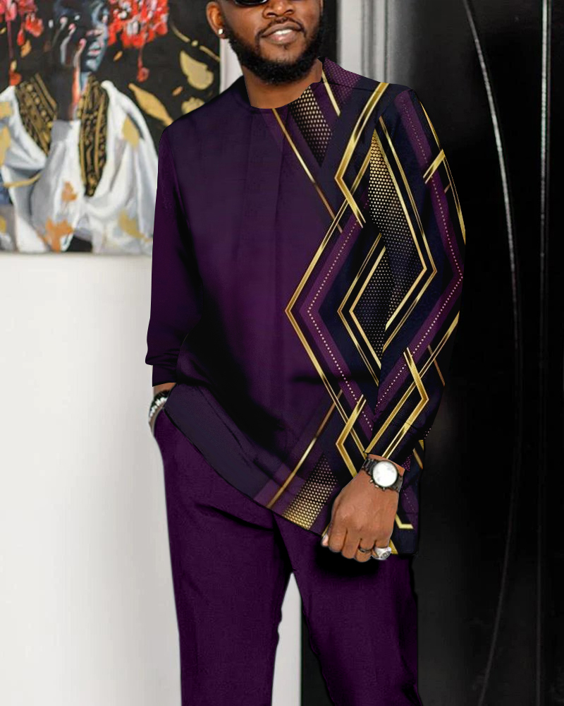 Men's Colorblock Print Long Sleeve Sports Walking Suit -320