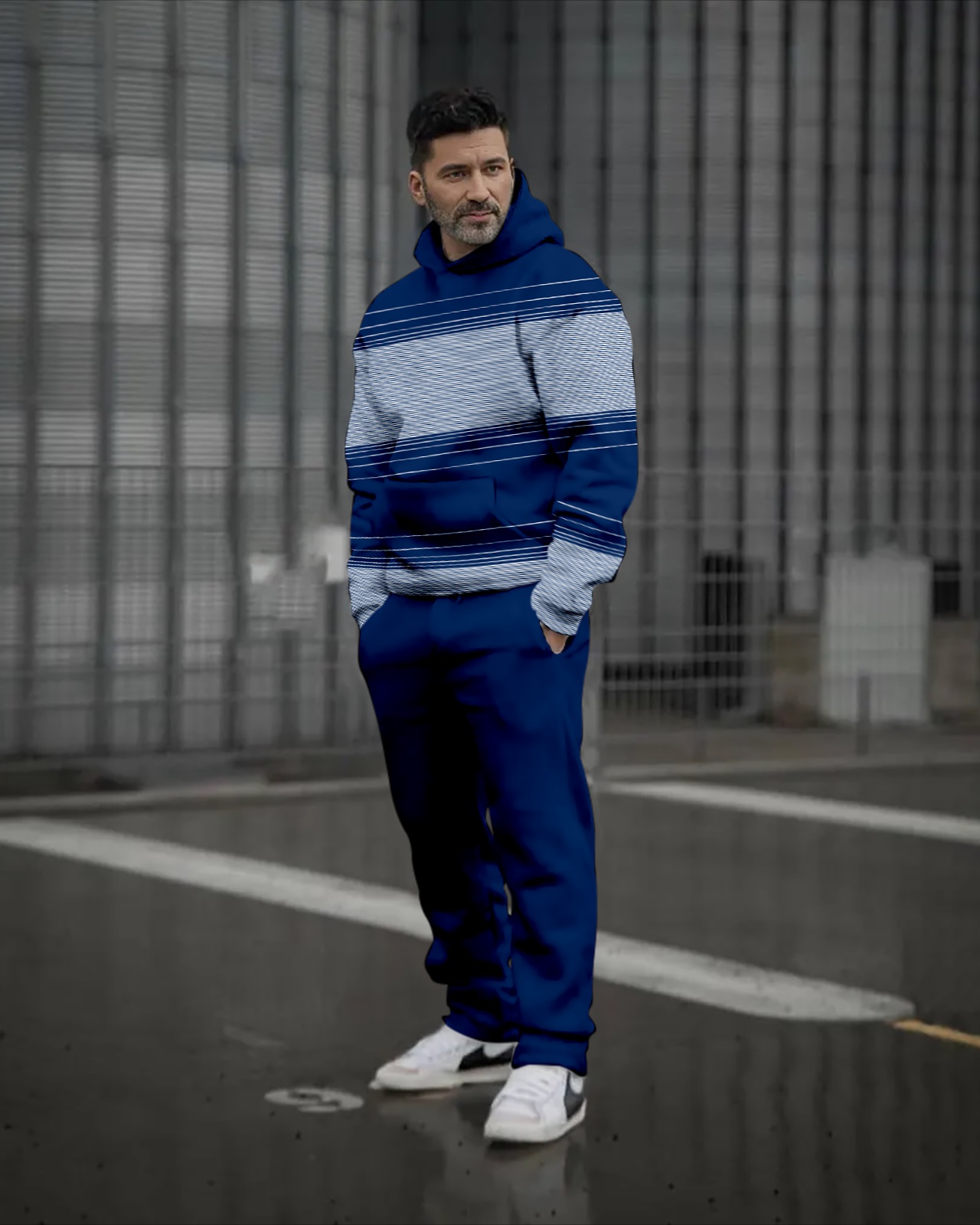 Men's Colorblock Printed Casual Sports Hoodie Set 452