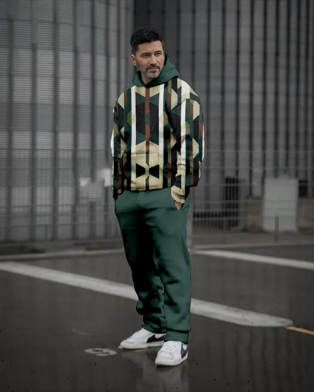 Men's Colorblock Printed Casual Sports Hoodie Set 456