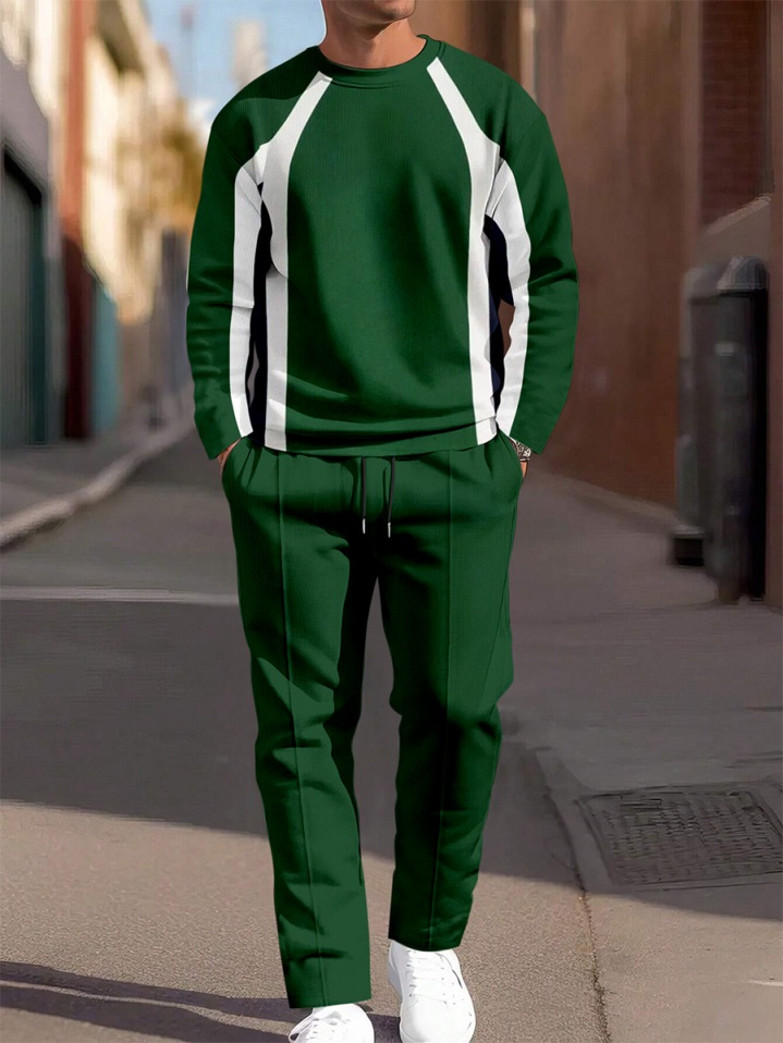 Men's Colorblock Round Neck Casual Sports Set 058