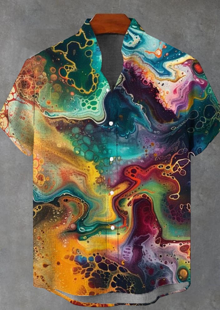 Men's cotton and linen printed stand collar short-sleeved shirt