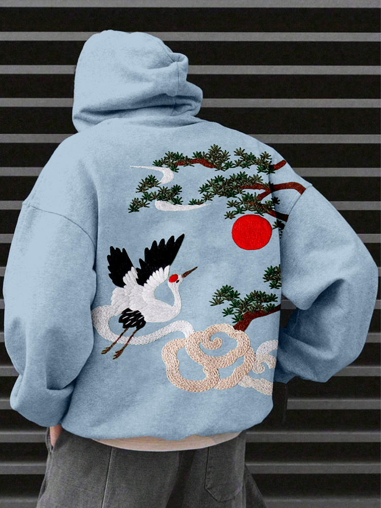 Men's Crane And Pine Embroidered Cozy Hoodie
