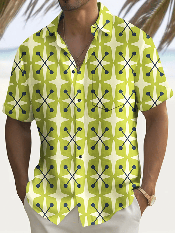 Men's Fashion Geometric Printed Casual Vacation Shirt (With Pockets)