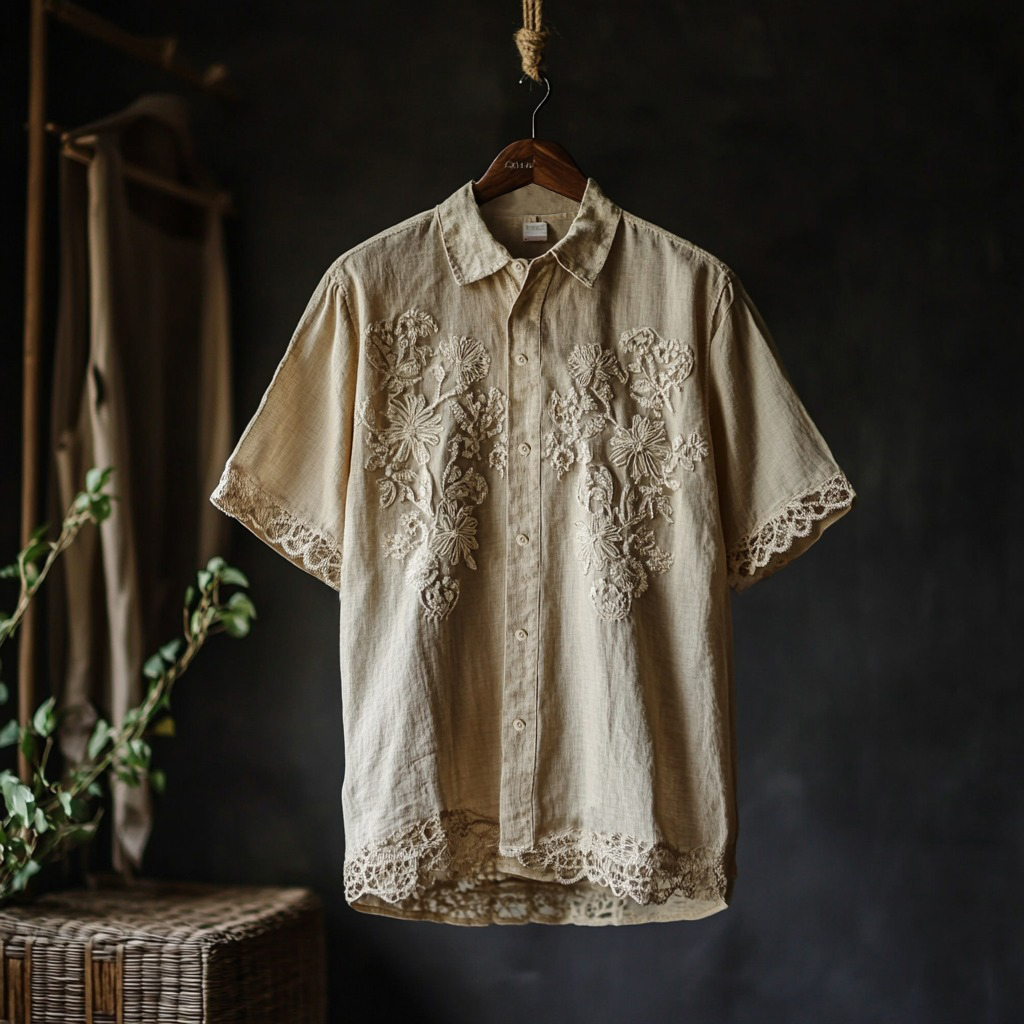 Men's Floral Lace Embroidery Art Fashion Shirt