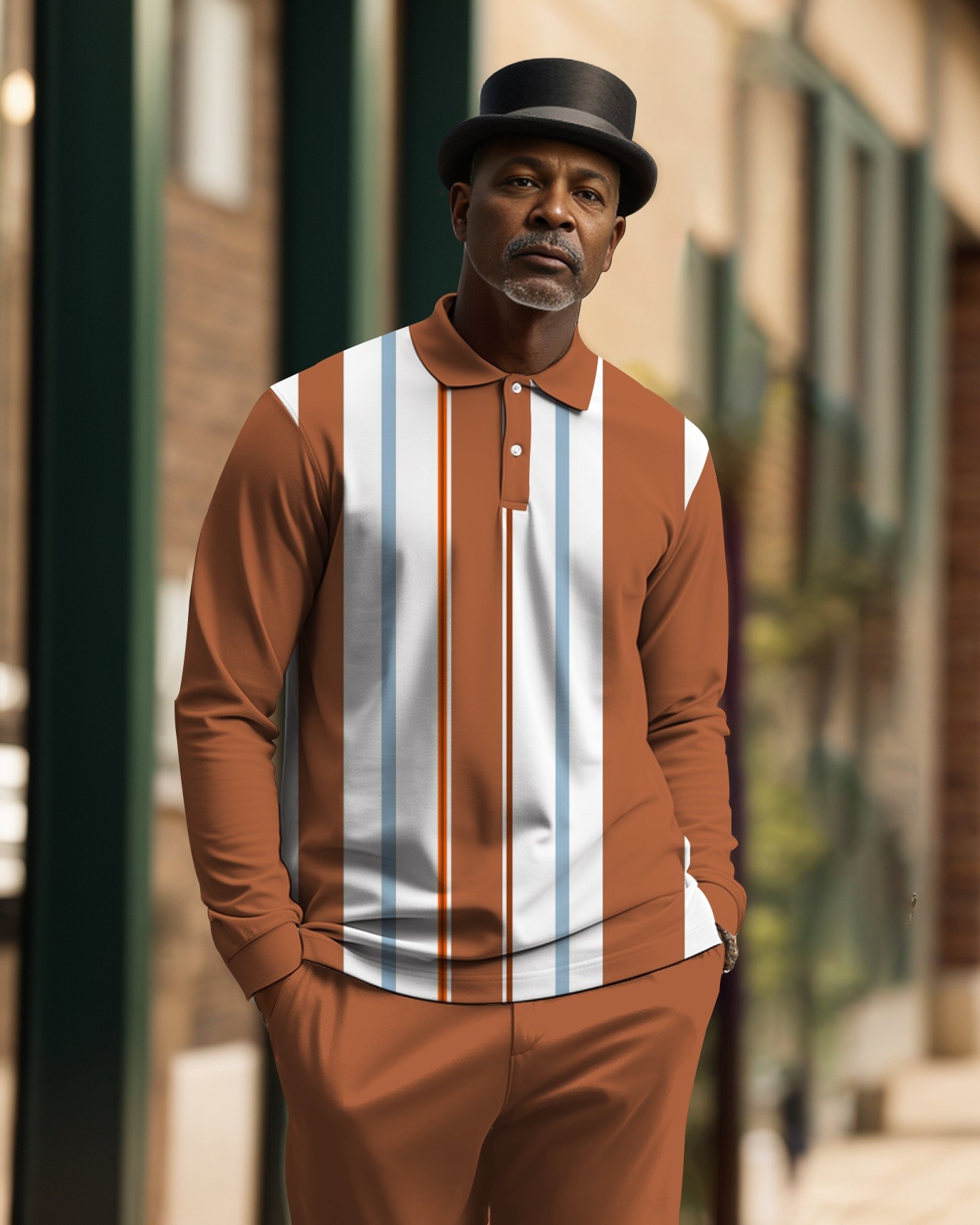 Men's Geometric Plaid Casual Colorblock POLO Shirt Trousers Set