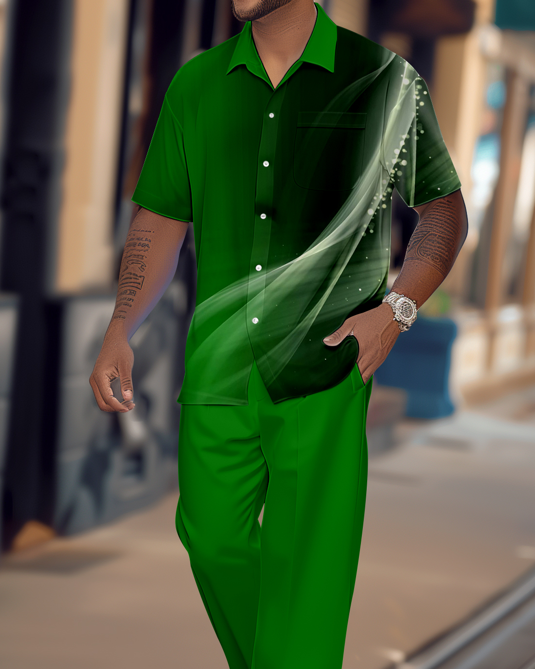Men's Gradient Color Block Short Sleeve Shirt Walking Suit 1107