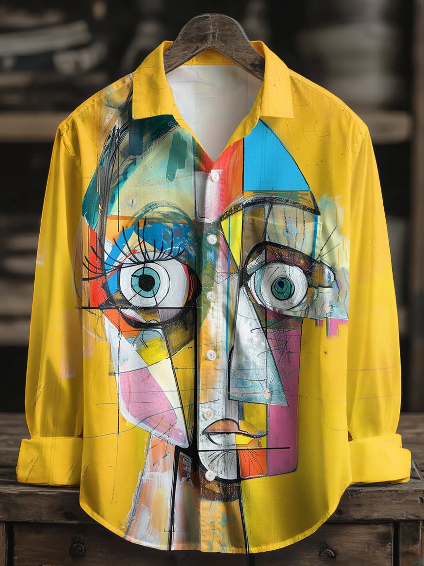 Men's Hawaiian Retro Abstract Casual Geometric Art Long Sleeve Shirt