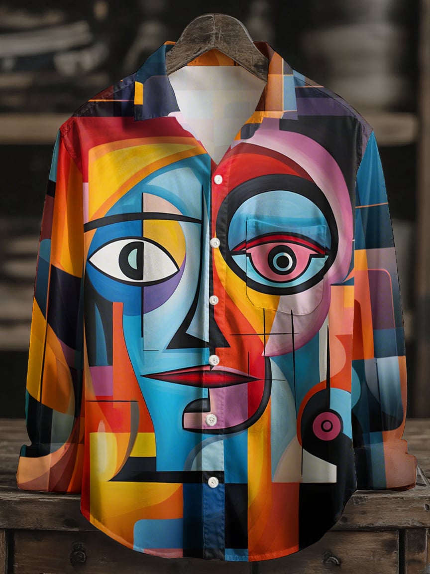 Men's Hawaiian Retro Abstract Casual Geometric Art Long Sleeve Shirt