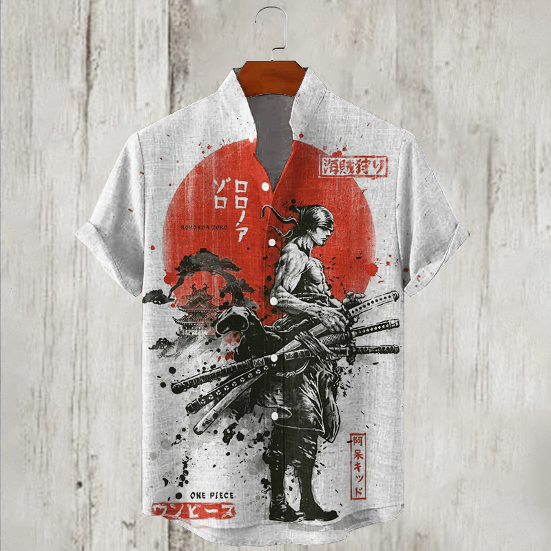 Men's Japanese Samurai Ink Art Linen Blend Cozy Shirt