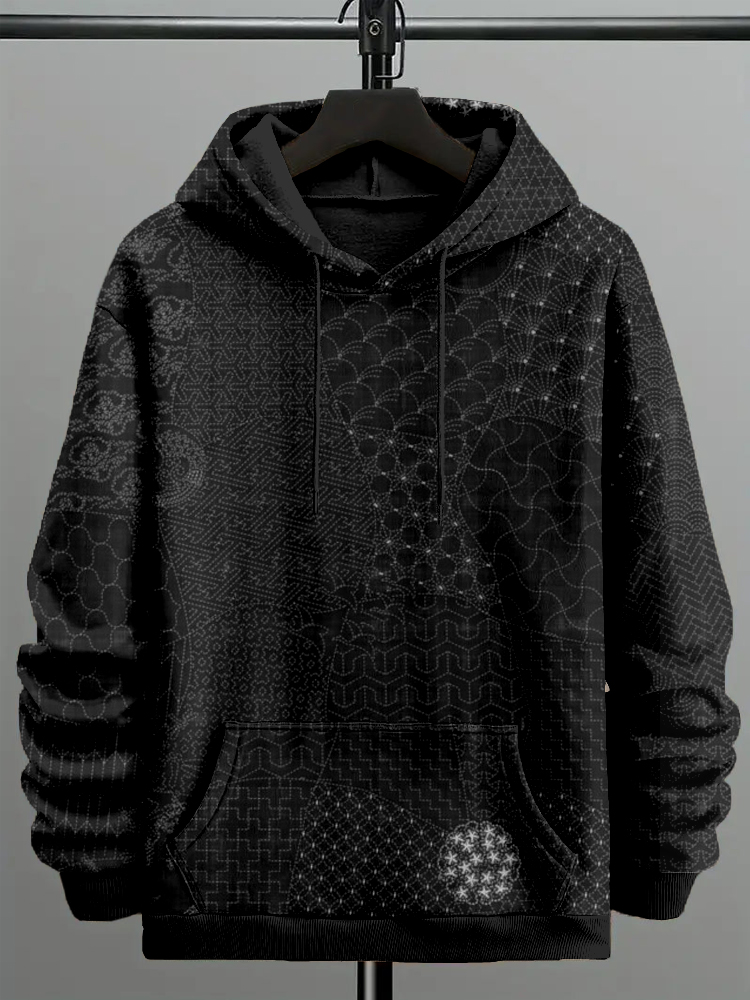 Men's Japanese Traditional Sashiko Art Comfy Hoodie